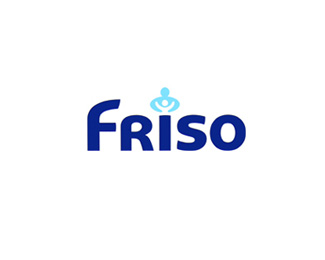 Friso美素標志源自荷蘭菲仕蘭乳品公司Frislan的名稱,同時在I字母上增加了淺藍色皇冠水滴狀作為奶粉形狀標記。